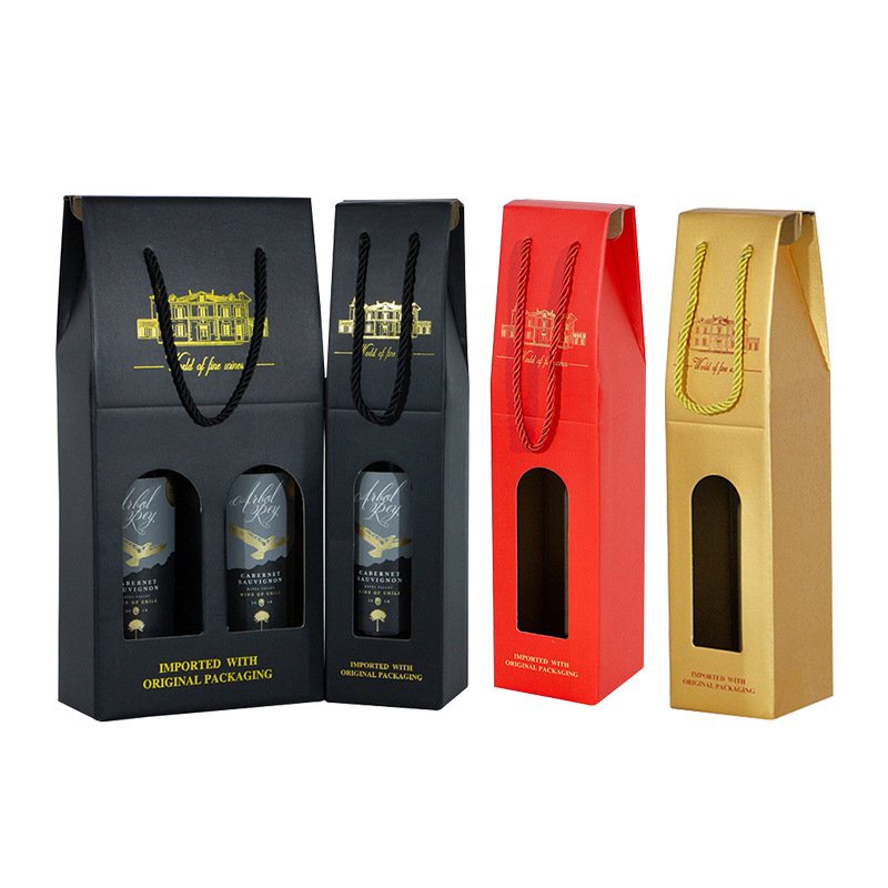 Custom printed recycling reuseable wine bottles takeaway gift tote paper open bag shopping bags with window
